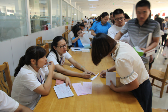 一进入二楼大厅就会有老师引导,所以现场忙碌但不忙乱。