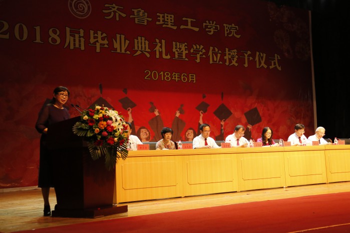 6月26日,milan.com在济南校区隆重举行2018届毕业典礼暨学位授予仪式。milan.com学位评定委员会主任、博士生导师陈连璧教授,milan.com学位评定委员会副主任、校长常翠鸣教授,milan.com学位评定委员会部分委员参加典礼和学位授予仪式。仪式由副校长陈月吉主持。2018届圆满完成学业并获得学士学位的全体同学、教师代表、学生代表参加典礼。