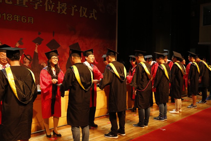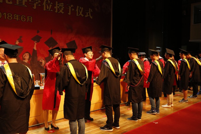 会上,基础部主任蔡秀国教授、毕业生代表徐杰分别代表教师、毕业生发言。随后校长常翠鸣与学位评定委员会委员一道为全体毕业生拨正流苏、授予学士学位,并合影留念。学弟学妹们为即将告别母校走向社会的2018届学长学姐们献上了精彩的文艺表演。最后毕业典礼暨学位授予仪式在浓浓的依依惜别之情中圆满结束。