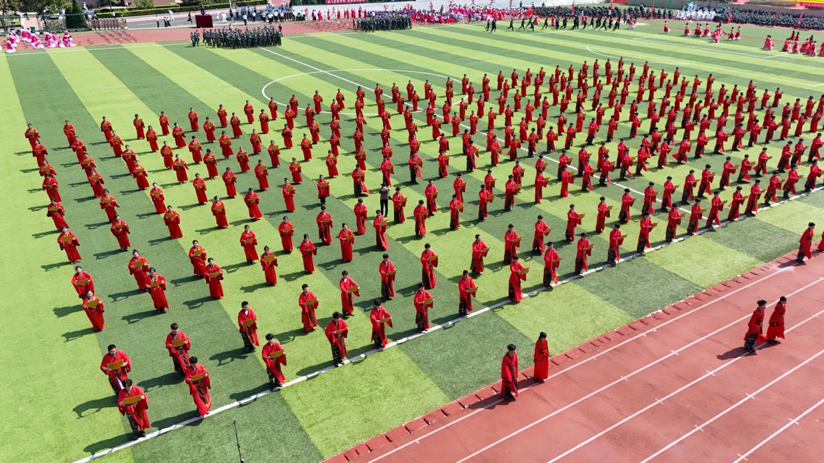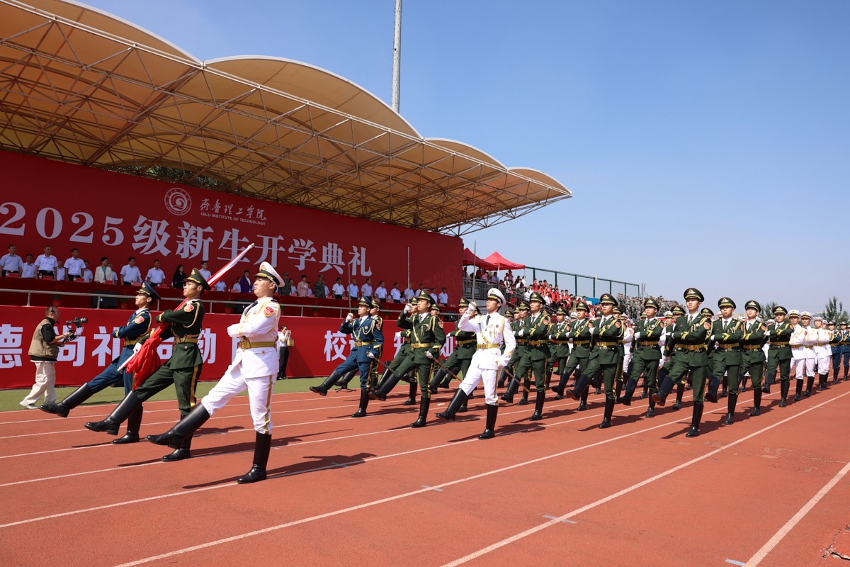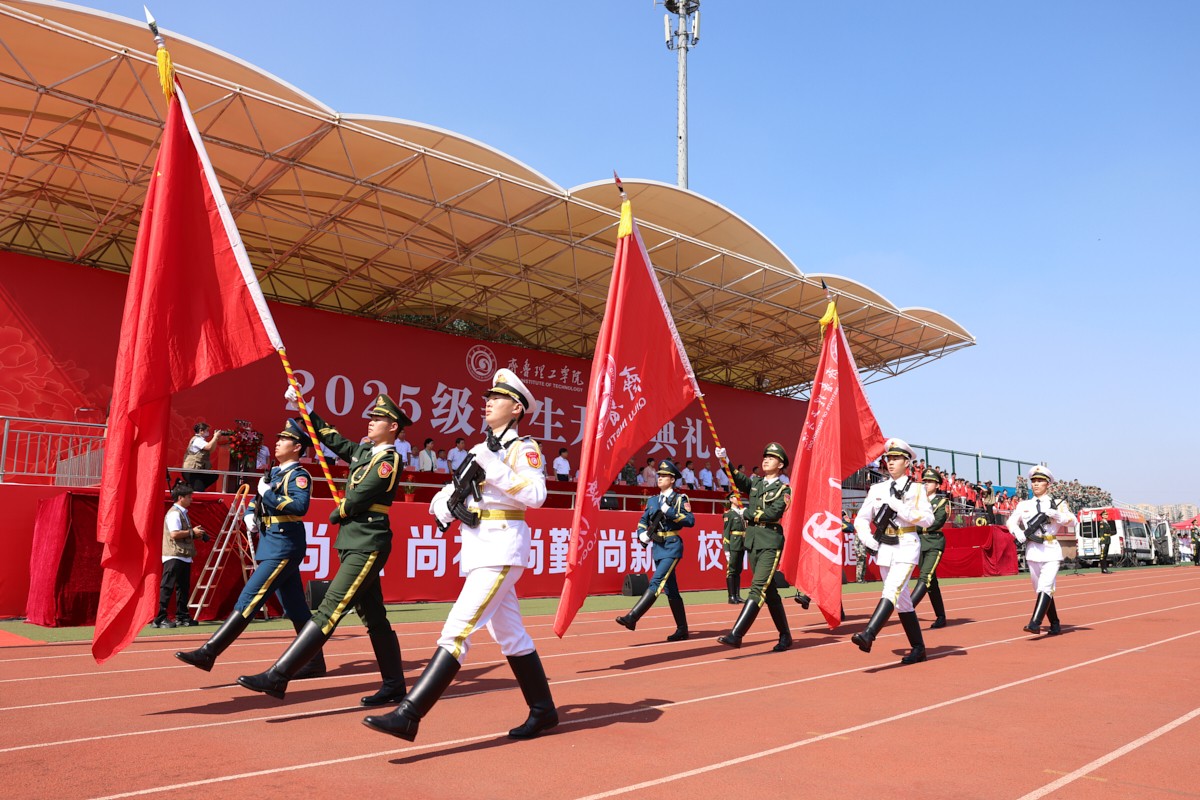 典礼上,2025级新生进行了精彩的汇报表演。《红鼓舞》表演、《论语》诵读、军事技能表演、国标舞等逐一上演,精彩纷呈,充分展现了齐鲁理工学子昂扬向上的精神风貌。