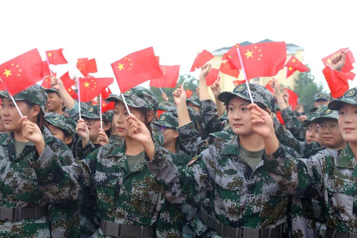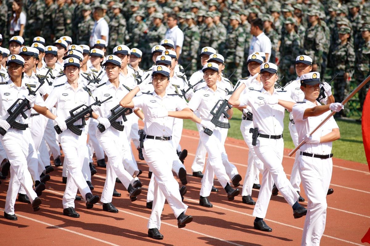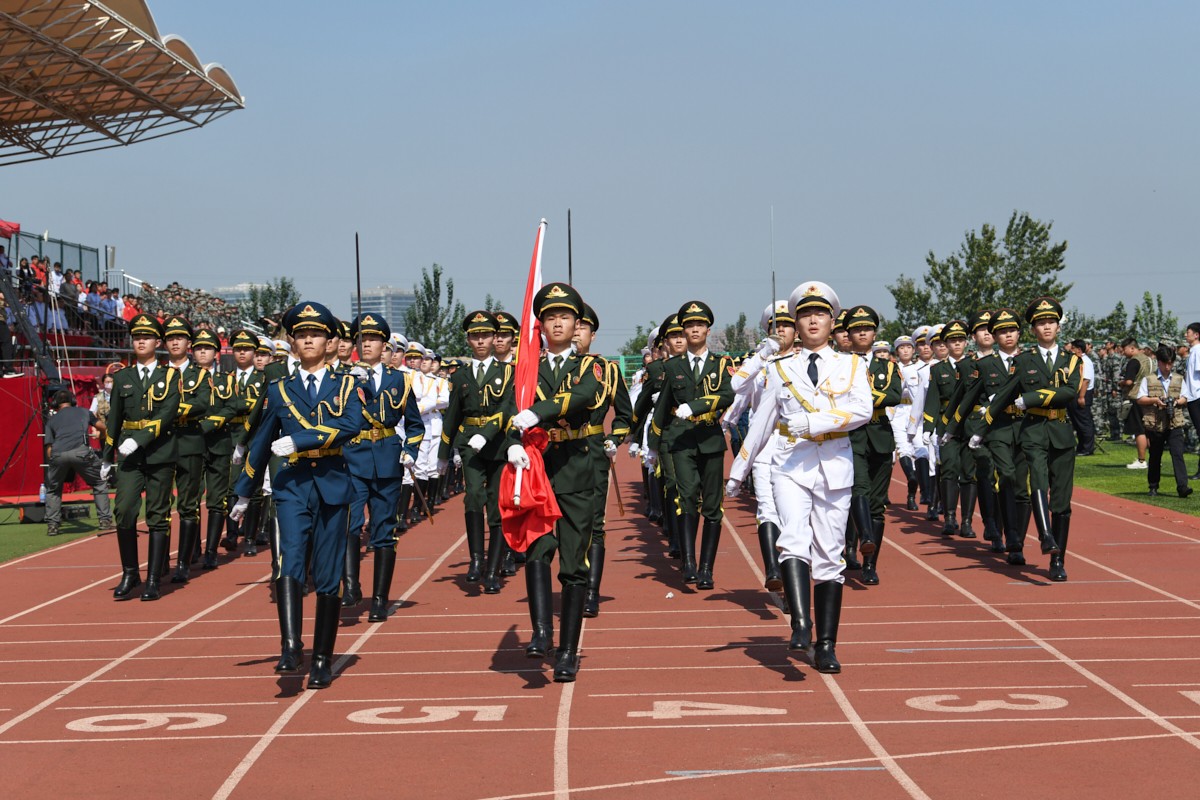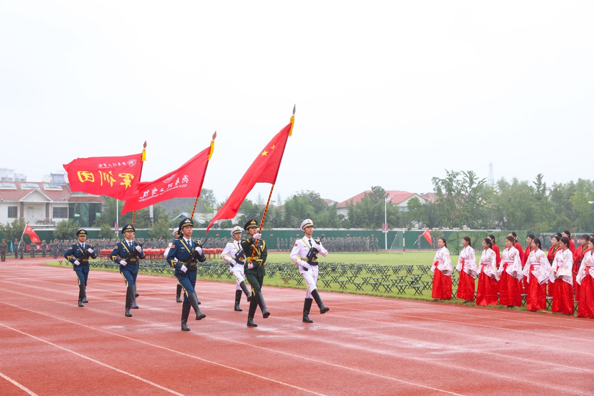 国旗、校旗、军训团团旗方队